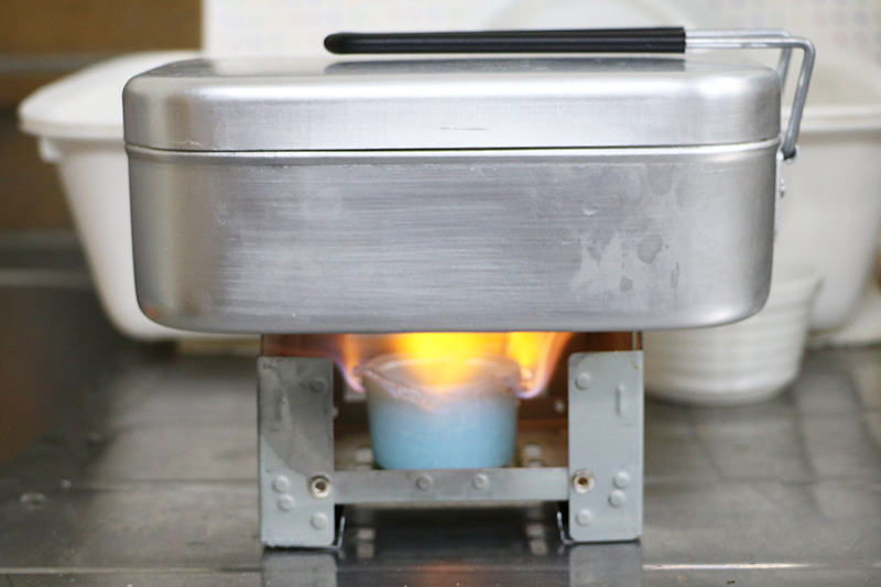 例によって固形のアルコール燃料です。放っておけば15~20分ほどで美味しく炊き上がります。